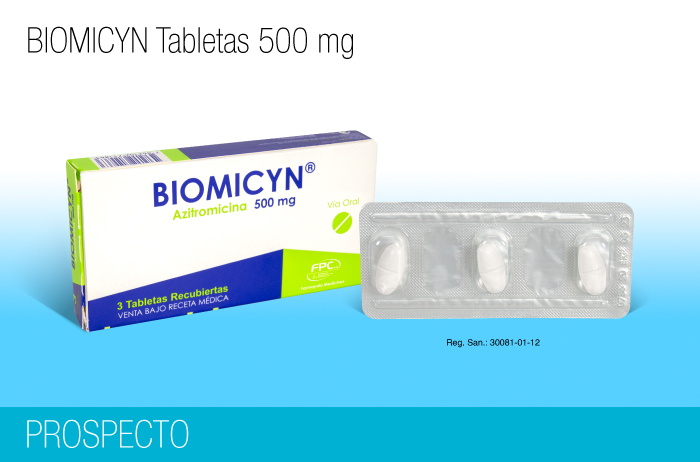 – Biomicyn 500 mg. Caja por 3 tabletas recubiertas.