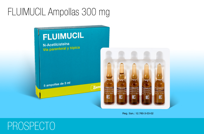 – Fluimucil Ampollas: Niños dosis ponderal (30 mg/Kg/día) y adultos 1 ampolla cada 12 horas en administración perenteral.