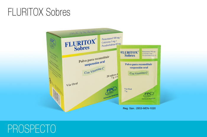 – Sobres (Acetaminofén 500 mg, Pseudoefedrina 60 mg, Cetirizina 5 mg + Ácido ascórbico). Caja x20 sobres de 7 g de polvo para construir. Sabor a naranja – limón