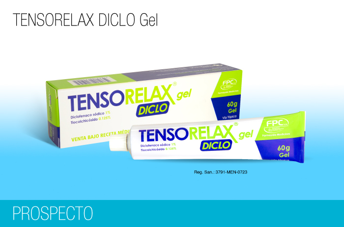 Tensorelax Diclo Gel presenta su formulación en gel para uso cutáneo. Tensorelax Diclo Gel contiene Tiocolchicósido más diclofenaco sódico, como sustancias activas, es un analgésico tópico. Actúa aliviando temporalmente el dolor leve.